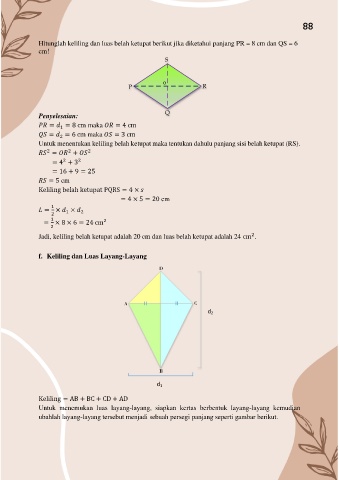 Untuk menentukan keliling belah ketupat maka tentukan dahulu panjang sisi belah ketupat (RS).