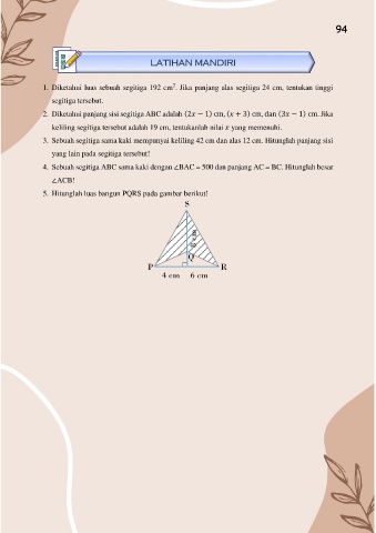 1.  Diketahui luas sebuah segitiga 192 cm . Jika panjang alas segitiga 24 cm, tentukan tinggi