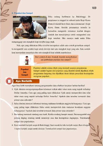 kopi merupakan sampelnya dan satu mangkok kopi adalah populasinya.