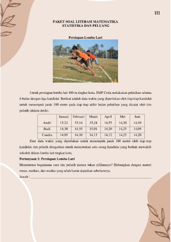 Untuk persiapan lomba lari 100 m tingkat kota, SMP Ceria melakukan pelatihan selama