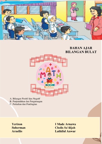 1 BAHAN AJAR BILANGAN BULAT A. Bilangan Positif dan Negatif B. Penjumlahan dan Pengurangan C. Perkalian dan Pembagian Yerizon I Made Arnawa Suherman Cholis Sa’dijah Lathiful Anwar Arnellis BILANGAN BULAT