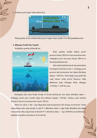 Pada gambar di atas terlihat bahwa posisi kapal selam sejauh 15 m dari permukaan laut.