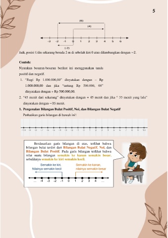 Jadi, posisi Udin sekarang berada 2 m di sebelah kiri 0 atau dilambangkan dengan −2.