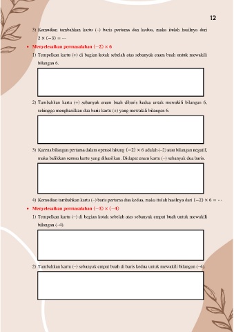 4) Kemudian tambahkan kartu (–) baris pertama dan kedua, maka itulah hasilnya dari (−2) × 6 = ⋯