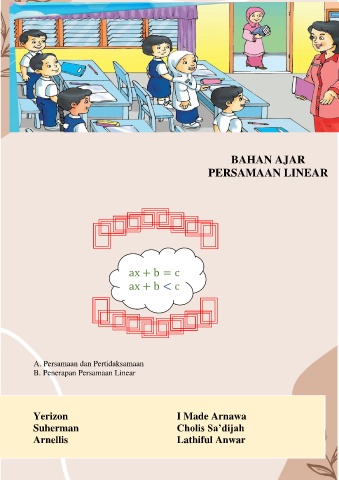 46 BAHAN AJAR PERSAMAAN LINEAR ax + b = c ax + b < c A. Persamaan dan Pertidaksamaan B. Penerapan Persamaan Linear Yerizon I Made Arnawa Suherman Cholis Sa’dijah Arnellis Lathiful Anwar