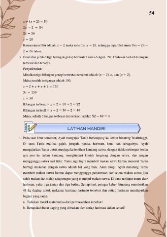 3.  Diketahui jumlah tiga bilangan genap berurutan sama dengan 150. Tentukan Selisih bilangan