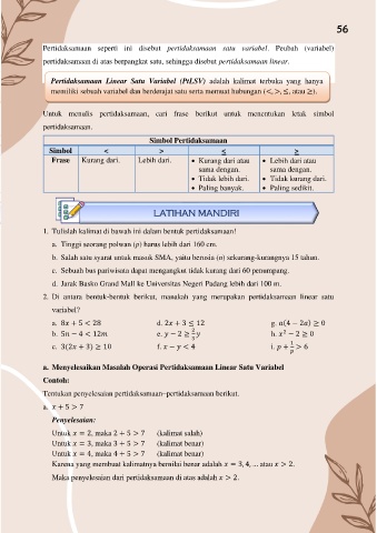 a.  Menyelesaikan Masalah Operasi Pertidaksamaan Linear Satu Variabel