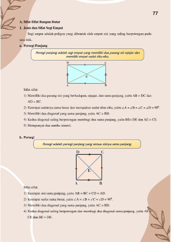 2) Keempat sudutnya sama besar dan merupakan sudut siku-siku, yaitu ∠A = ∠B = ∠C = ∠D = 90 .