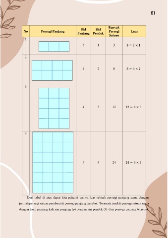 jumlah persegi satuan pembentuk persegi panjang tersebut. Ternyata jumlah persegi satuan sama