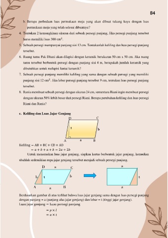 c.  Keliling dan Luas Jajar Genjang
