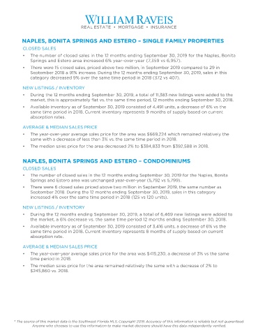 • The number of closed sales in the 12 months ending September 30, 2019 for the Naples, Bonita