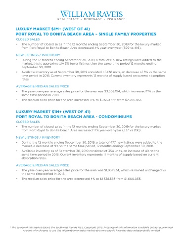 from Port Royal to Bonita Beach Area increased 17% year-over-year (337 vs 286).