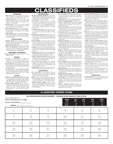 ALL CLASSIFIED MUST BE PAID IN ADVANCE. INCLUDED IN OUR ONLINE FLIP PAGE EDITION.