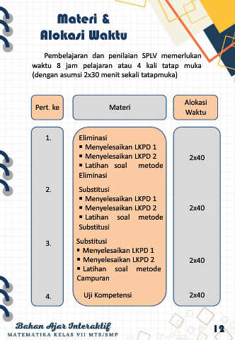 waktu 8 jam pelajaran atau 4 kali tatap muka