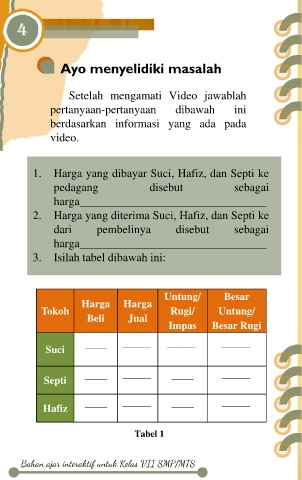 1. Harga yang dibayar Suci, Hafiz, dan Septi ke