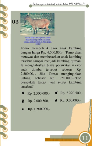 Tomo membeli 4 ekor anak kambing