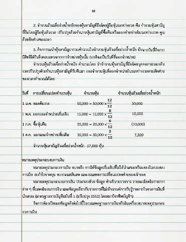 2. จ ำนวนถัวเฉลี่ยถ่วงน้ ำหนักของหุ้นสำมัญที่ถือโดยผู้ถือหุ้นระหว่ำงงวด คือ จ ำนวนหุ้นสำมัญ