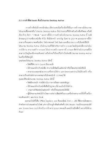 โปรแกรม Desktop Author เป็นโปรแกรมที่ใช้ส าหรับการสร้าง e-book โดยมีจุดเด่นที่ความง่ายใน