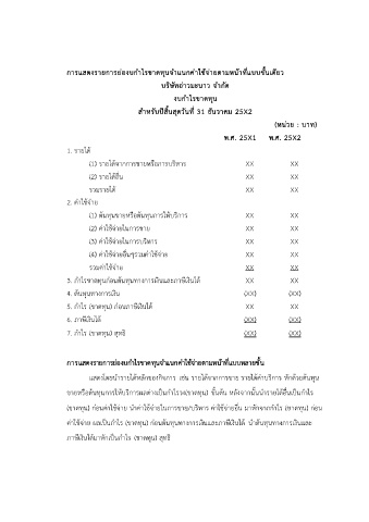 การแสดงรายการย่องบก าไรขาดทุนจ าแนกค่าใช้จ่ายตามหน้าที่แบบขั้นเดียว