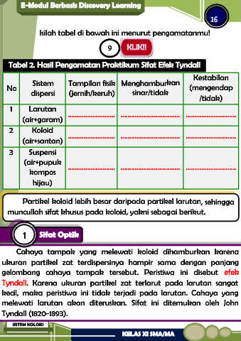 muncullah sifat khusus pada koloid, yakni sebagai berikut.