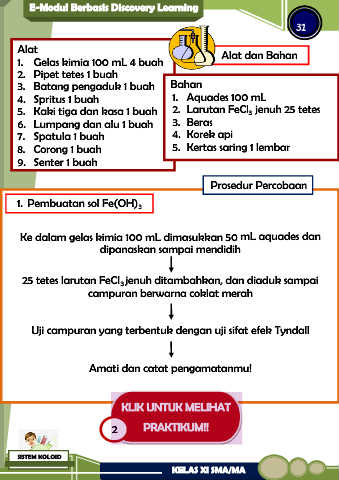 5. Kaki tiga dan kasa 1 buah 2. Larutan FeCl jenuh 25 tetes
