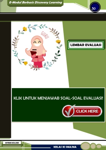 E-Modul Berbasis Discovery Learning 50 LEMBAR EVALUASI KLIK UNTUK MENJAWAB SOAL-SOAL EVALUASI! SISTEM KOLOID KELAS XI SMA/MA