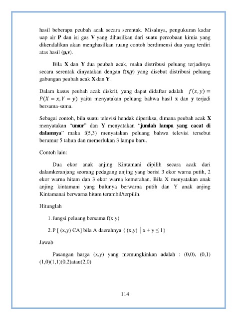 hasil beberapa peubah acak secara serentak. Misalnya, pengukuran kadar