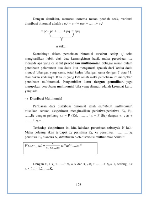 Maka peluang akan terdapat x1 peristiwa E1, x2, peristiwa, ………., xk