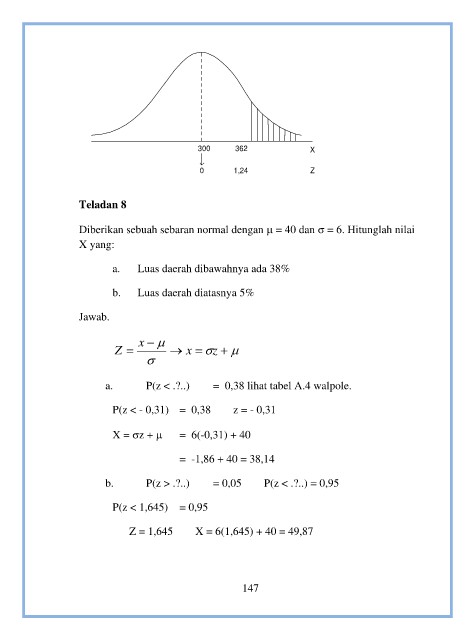 a. P(z < .?..) = 0,38 lihat tabel A.4 walpole.