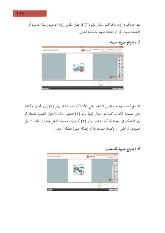 لإدراج أداة صورة متنقلة يتم الضغط علي الأداة كما هو مشار برقم ( )1ويتم تحديد مكانها