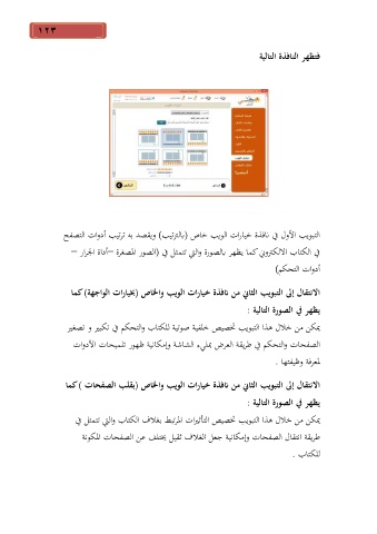 في الكتاب الالكتونيكما يظهر بالصورة والتي تتمثل في (الصور المصغرة –أداة الجرار –