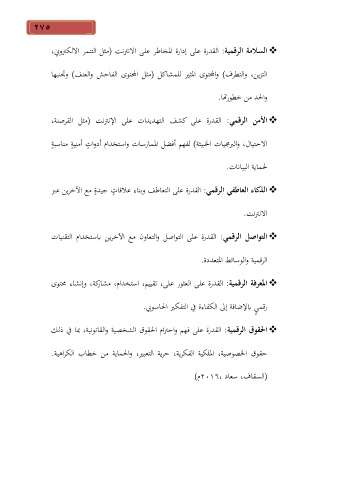 السلامة الرقمية :القدرة على إدارة المخاطر على الانتنت (مثل التنمر الالكتوني،