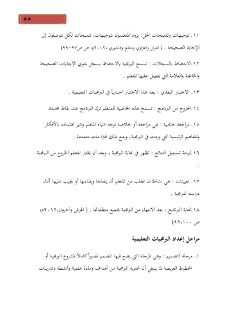 الخطوط العريضة لما ينبغي أن تحتويه البرمجية من أهداف ومادة علمية وأنشطة وتدريبات
