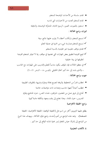 من البرامج إلى إشراك حواس المتعلم ليمر بخبرة تشابه الواقع إلى حدكبير .