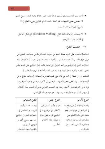 اختبارات التفرع في البرنامج من اهم العوامل التي تعتمد عليها قدرة البرنامج على تقديم تعليم