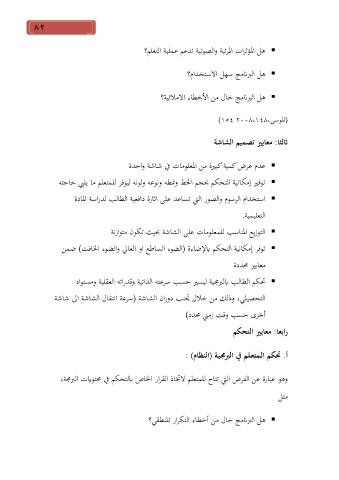 تحكم الطالب بالبرمجية ليسير حسب سرعته الذاتية وقدراته العقلية ومستواه