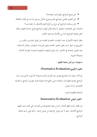 واعتمادا على المواصفات والمعايير السابقة يمكن لمصمم البرنامج وضع استمارة لتقويم برنامجه