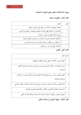 ويوجد عدة مجالات لمعايير تقويم البرمجيات التعليمية: