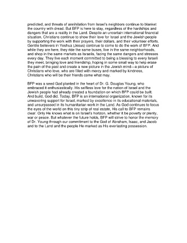 war or peace. But whatever the future holds, BFP will strive to honor the memory