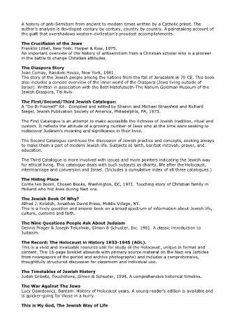 for ethical living. This catalogue deals with such subjects as charity, life after the Holocaust,