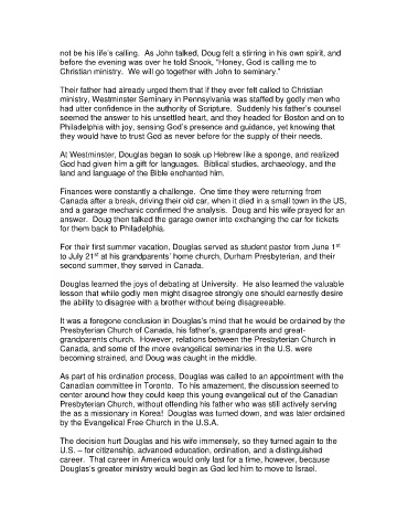 not be his life’s calling. As John talked, Doug felt a stirring in his own spirit, and