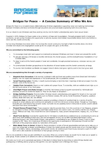Bridges for Peace - A Concise Summary of Who We Are