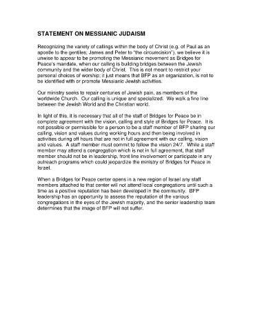 STATEMENT ON MESSIANIC JUDAISM