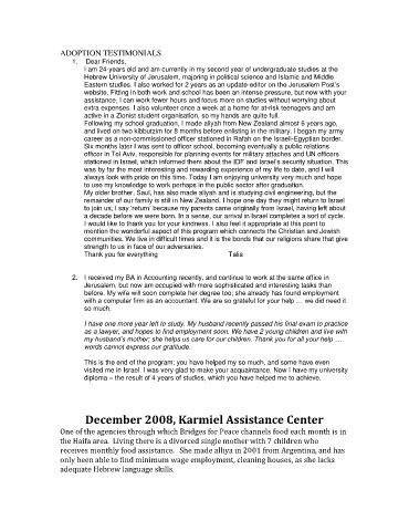 receives monthly food assistance. She made alliya in 2001 from Argentina, and has