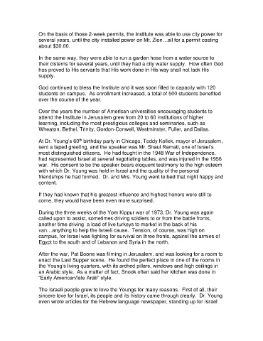 sincere love for Israel, its people and its history came through clearly. Dr. Young