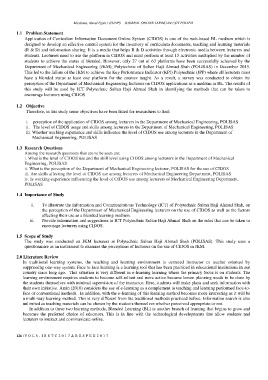 perception of the Department of Mechanical Engineering lecturers on CIDOS applications as a medium in BL. The results of