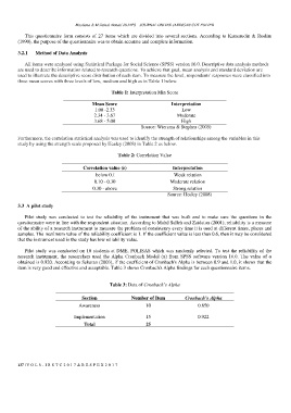 three mean scores with three levels of low, medium and high as in Table 1 below.