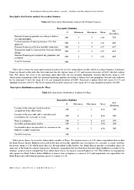 Table above shows the mean and standard deviation for the first independent variable which is product features of personal
