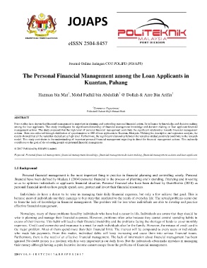 among the loan applicants. This study investigates the significant relationship of financial management knowledge and decision making on loan applicant financial