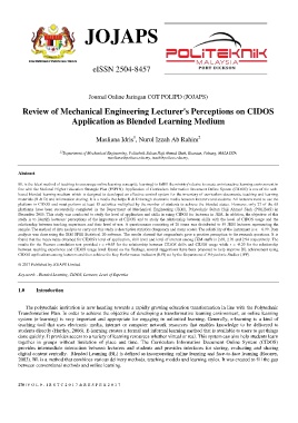 Review of Mechanical Engineering Lecturer's Perceptions on CIDOS
